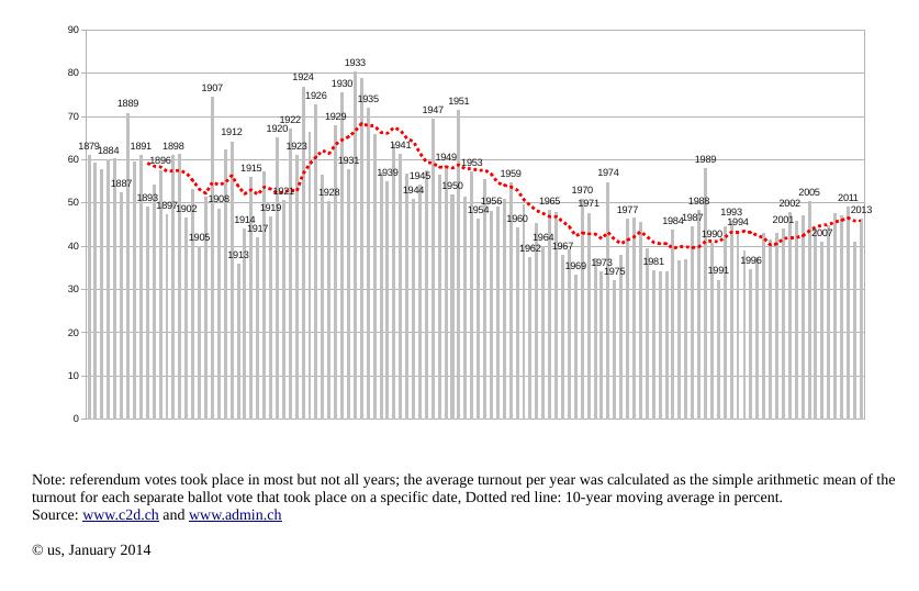 Average Annual Turnout for Swiss Referendum Votes, 1879-2013